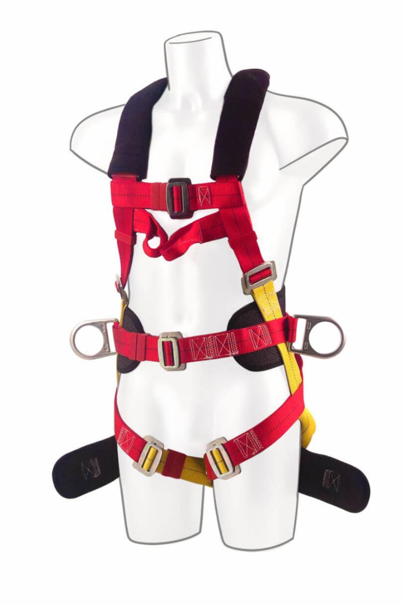 Denne universelle selen inkorporerer alle fallsikring- og beskyttelsesbehov i en. Funksjonene inkluderer to brystløkker, tosidige D-ringer, glidende dorsal D-ring, to seterløkker og to nedre rygg. Fullstendig justerbar med skulder, rygg og setepute for ekstra komfort.