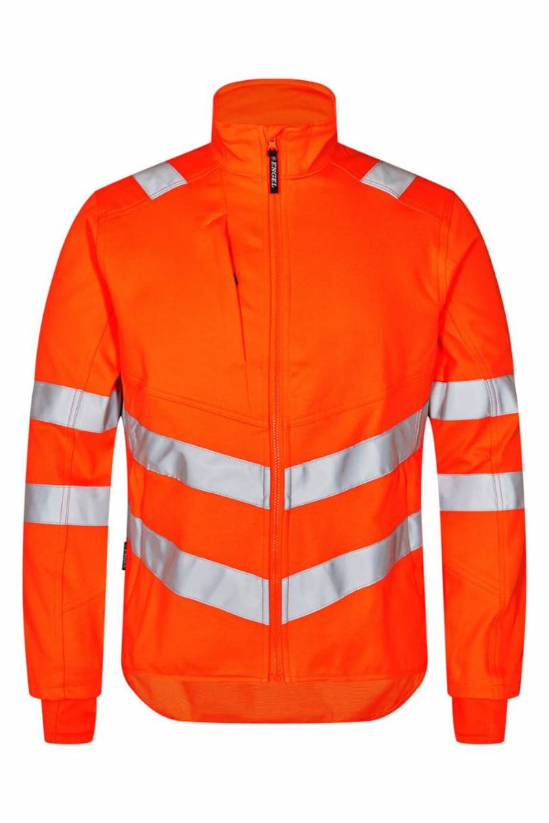 Elastisk og funksjonell fluorescerende arbeidsjakke med moderne snitt. Jakken har høy krage og forlenget bakstykke. Det elastiske stoffet gir god komfort og bevegelighet.Glidelås i front. To romslige sidelommer og brystlomme – alle med glidelås. Ermene har et ekstra vindfang i ribbemateriale. Vindfanget har et hull til tommelfingeren og kan trekkes over hånden for å beskytte ytterligere mot kulde. Reflekser over skuldre og rundt ermer og midje. Bekledningsklasse 2. Testet etter 50 ganger vask.