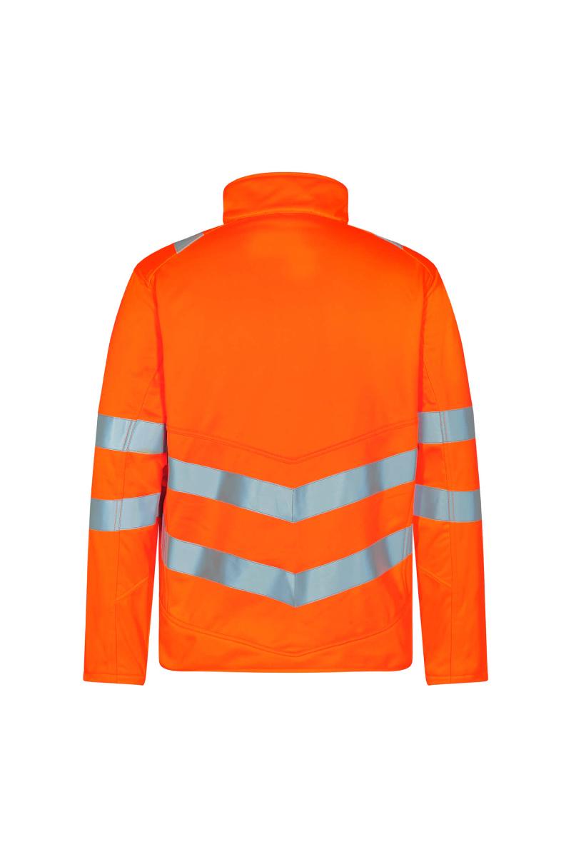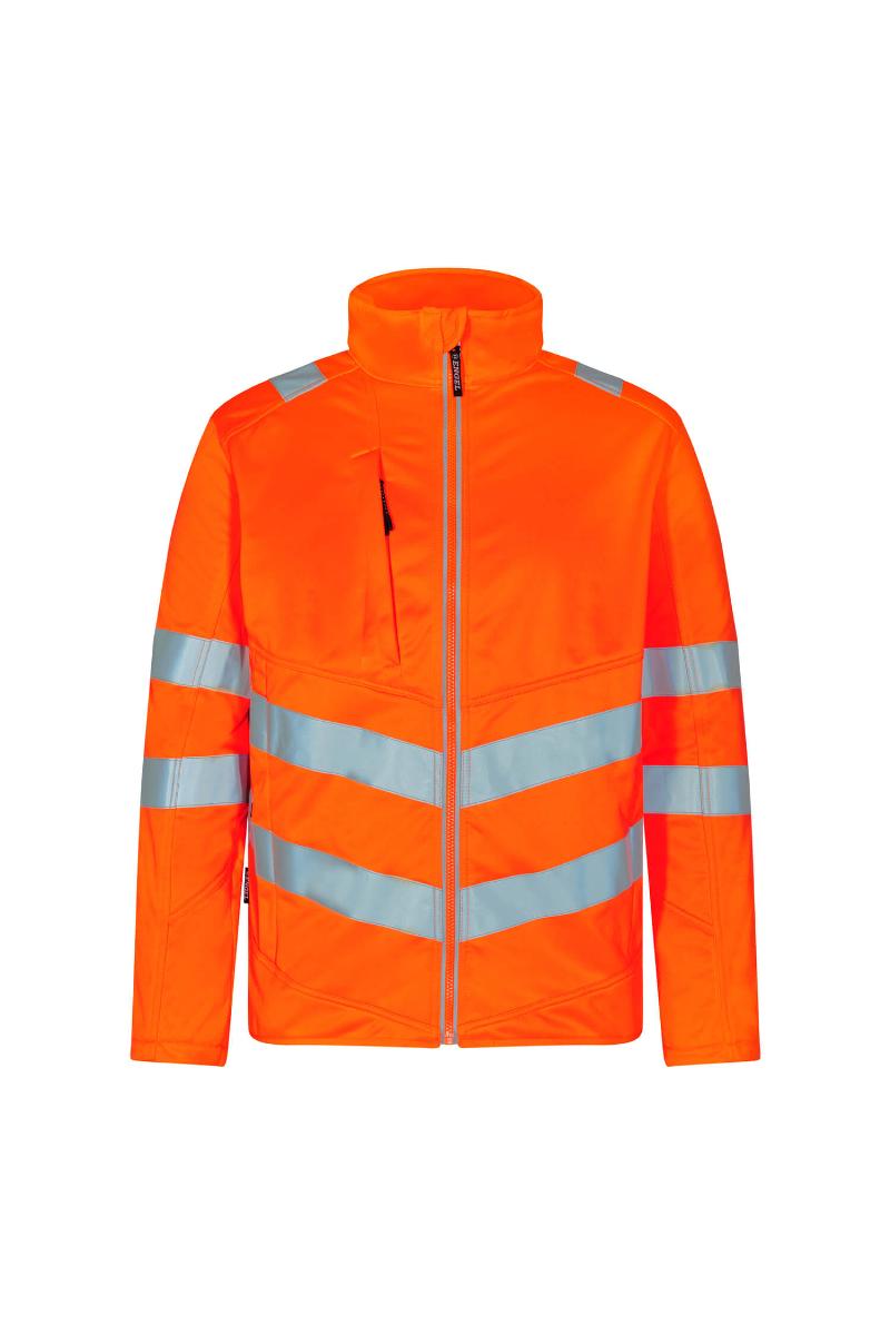 Funksjonell og fin fluorescerende softshelljakke med moderne snitt, laget i vind- og vannavstøtende stoff. Jakken har fleece på innsiden og i kragen, noe som gjør den myk og behagelig mot huden. Elastisk kvalitet som gir komfort og bevegelighet. Refleksglidelås i front. To romsligesidelommer og brystlomme – alle med glidelås. To store innvendige lommer lukket med borrelås. Jakken har elastisk kantbånd nederst. Ermene har et ekstra vindfang i et elastisk materiale. Vindfanget har hull til tommelfingeren og kan trekkes over hånden for å beskytte ytterligere mot kulde. Reflekser over skuldre og rundt ermer og midje. Bekledningsklasse 2. Testet etter 25 ganger vask.
