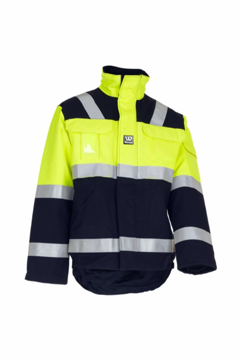 EN ISO 11612:2015 A1+A2 B1 C1,E1,F1, EN ISO 11611:2015 A1+A2 kl.1, EN 1149-5:2018, EN 13034:2005+A1:2009 type BP (6), EN ISO 20471:2013 klasse 2, EN 342:2017. Jakke sammen med bukse, 23549-44502, klasse 3, 343:2003+A1:2009 klasse 3.1, IEC 61482-2 klasse 1 (4KA), metervare, Ebt50 16,8 cal/cm2, HAF 89,5%
