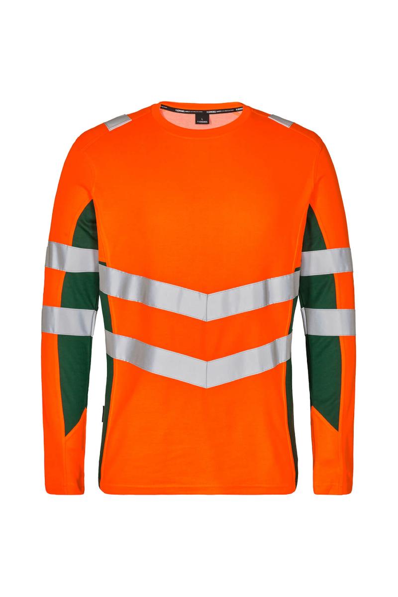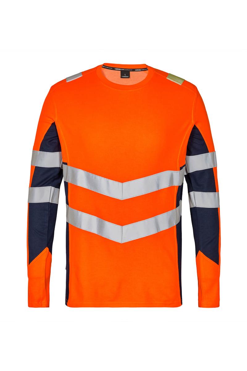 Behagelig og fin hi-vis-T-skjorte med lange ermer og moderne snitt. T-skjorten er laget i behagelig piquestoff med bomull på innsiden for økt komfort. Ribbestrikket hals. Reflekser på skuldre og rundt ermer og midje. Bekledningsklasse 2. Testet etter 25 ganger vask.
