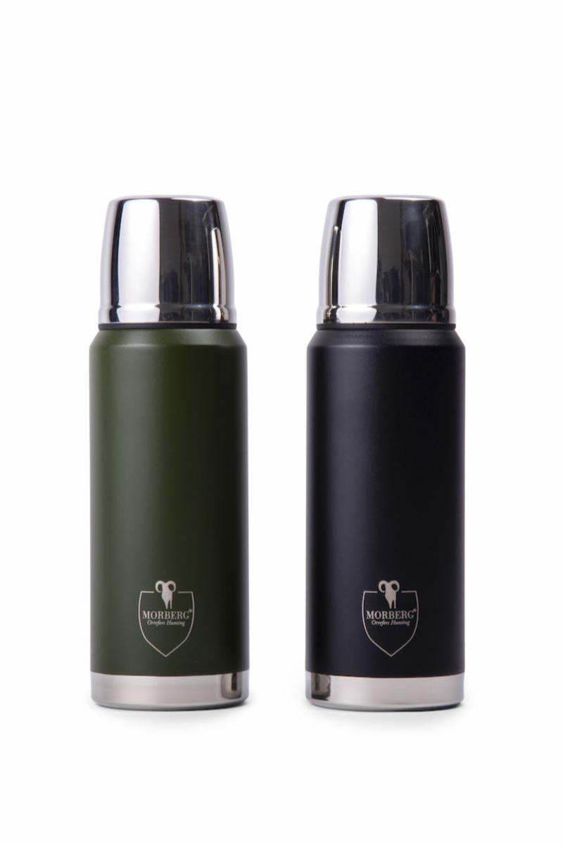 Vakuumisolert termosflaske av rustfritt stål med doble vegger der innerveggen er belagt med kobber for best mulig varmekapasitet.