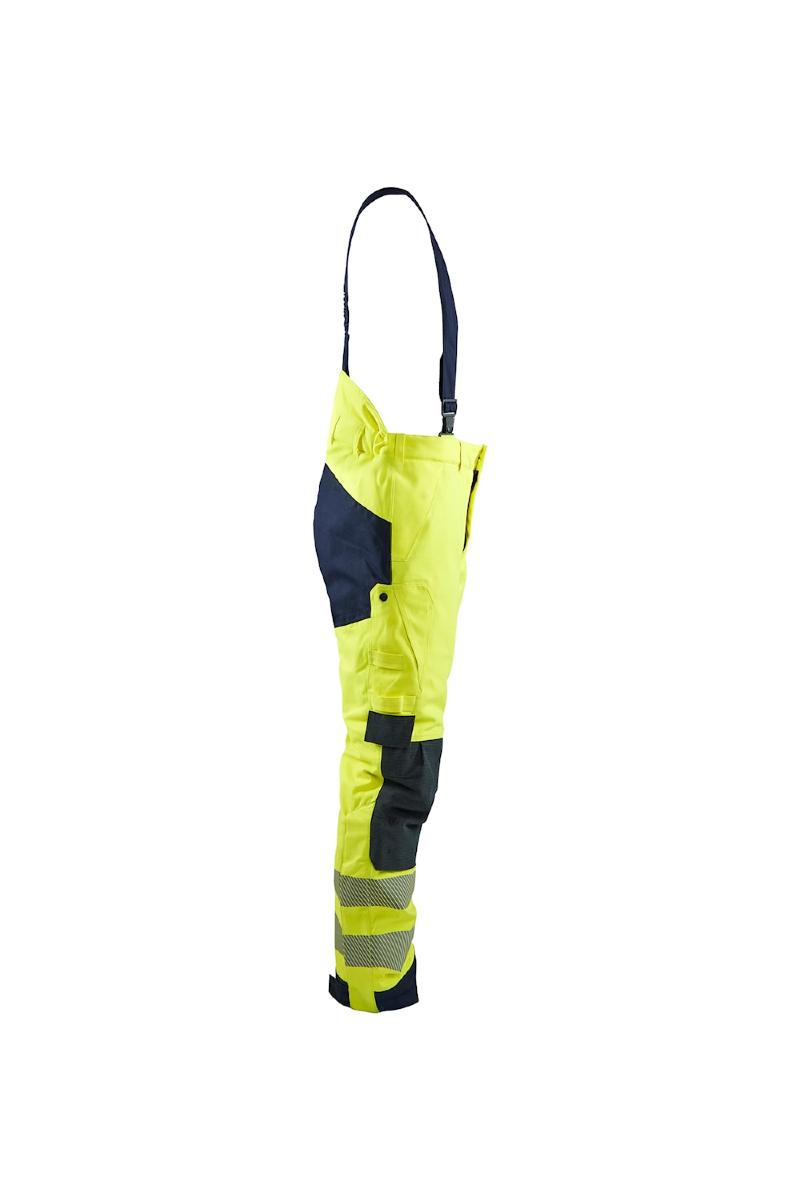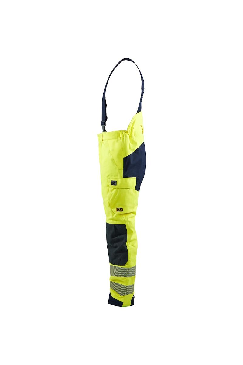 Metallfri og flammehemmende selebukse i varselklasse 2 som virkelig leverer når vinteren setter inn med kulde, regn og vind. For ekstra slitestyrke er buksen forsterket på de utvendige kneputelommene og på baksiden av ben. Justerbar i vidden, segmenterte transferreflekser for økt synlighet, justerbar benavslutning, samt mørke partier på smussutsatte områder. Avtakbare og justerbare seler. Selebuksen har beltehemper i livet og glidelås opp til kneet samt benlomme, tommestokklomme og varmelommer. Denne olje-, smuss og vannavvisende selebuksen klarer alt og enda litt til! Sertifisert i henhold til IEC 61482-2: APC 2, ELIM 33 cal/cm² og ATPV 39 cal/cm². EN 1149, EN ISO 11612, EN ISO 11611, EN 13034, EN ISO 20471 og EN 14404. EN 343 4/1 – Vannsøyle: 12 000 mm. EN 342 sammen med modell 4517, 4917, 4527 – Clo-verdi 2,19, Icler 0,334 m² K/W.