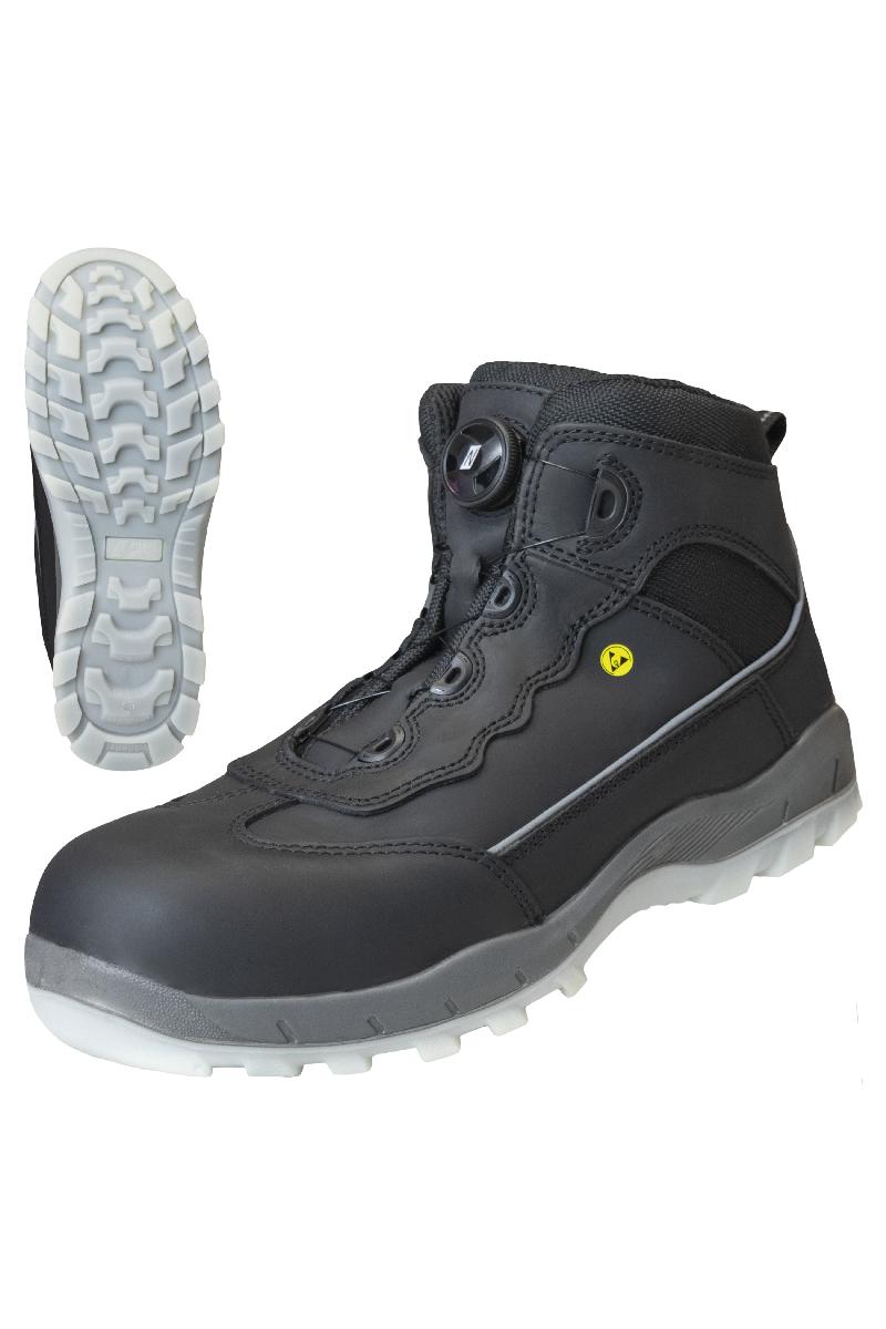 SPORT STEP MID FIT, vernestøvler, S3, slitesterkt narvskinn, svart, tøff og svertefri PU / TPU yttersåle, grå / gjennomsiktig (fargekode: 1000), tåhette i glassfiber, tekstilperforeringsbestandig mellomsåle, metallfrie, ergonomiske innersåler, sporty design, med skivefeste 711 // FIT SYSTEM for rask tilgjengelighet og optimal passform, høyeste sklisikkerhet (SRC), bredde 11, godt polstret støvel for optimal passform og komfort, omkretsreflekterende stripe, hælfôr for enkel på- og avkledning og hælforsterkning laget av robust mikrofiber, DGUV Rule 112-191-sertifisert, ESD-kompatibel