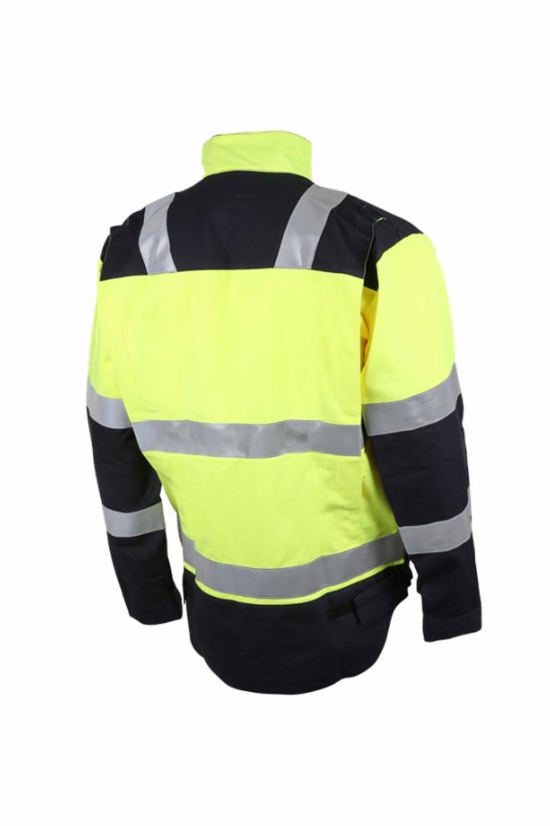 EN ISO 11612:2015 A1 B1 C1,F1, EN ISO 11611:2015 klasse 1 A1, EN 1149-5:2008, IEC 61482-2:2009 klasse 1 (4 ka ), metervare ATPV 10,5 cal/cm2, HAF 77,3%, EN 13034:2005+A1:2009 TYPE BP(6), EN ISO20471:2013+A1:2007 klasse 2