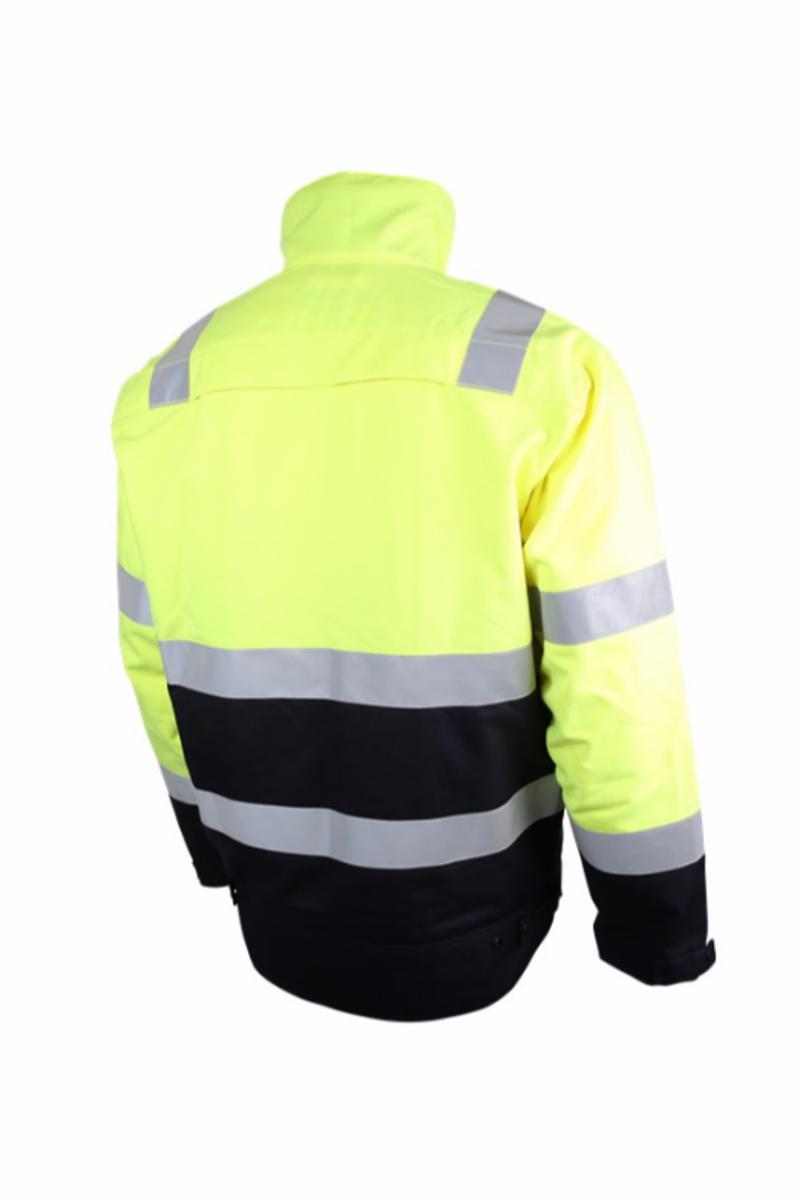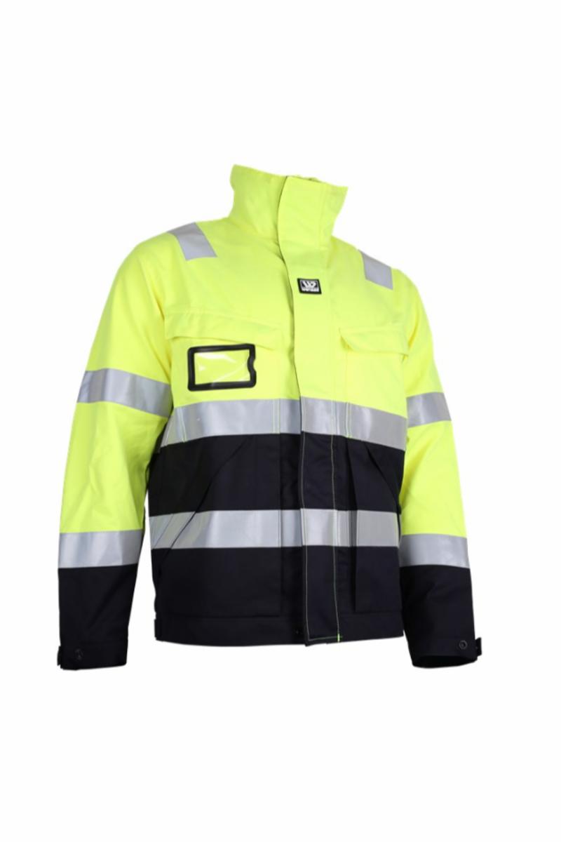 Stående krage foret med AF fleece. Skjult glidelås under dobbel frontklaff som lukkes med skjulte trykknapper, bærestykke med ventilering og forlenget rygg. Jakken har 1 pennelomme på innsiden av frontklaff, 2 brystlommer med klaff, D-ring festet under begge klaffer, 1 ID-kortlomme utenpå venstre brystlomme, 2 frontlommer, og 1 innvendig lomme, regulering i siden og stramming på erme, refleks på skuldre, torso, og ermer.