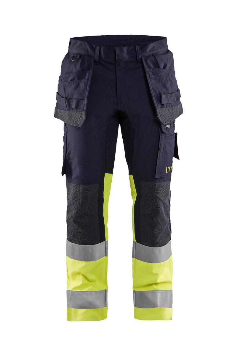 Komfortabel, flammehemmende bukse med stretchfunksjon. En ideelle arbeidsbukse med høyt komfortnivå for folk som jobber i utsatte miljøer. Buksen har smarte detaljer som stretchpaneler for økt bevegelsesfrihet og fleksibilitet. Stoffet er slitesterkt, CORDURA®/Kevlar®/Protal®- forsterkede knær, meterstokk- og knivlomme med rom for telefon. Spesielt passende for elektrikere og liknende arbeid. Sertifisert i henhold til EN ISO 20471 Klasse 1, EN 1149-5, EN ISO 11612 A1, B1, C1, F1 og IEC 61482-2 Klasse 1.
