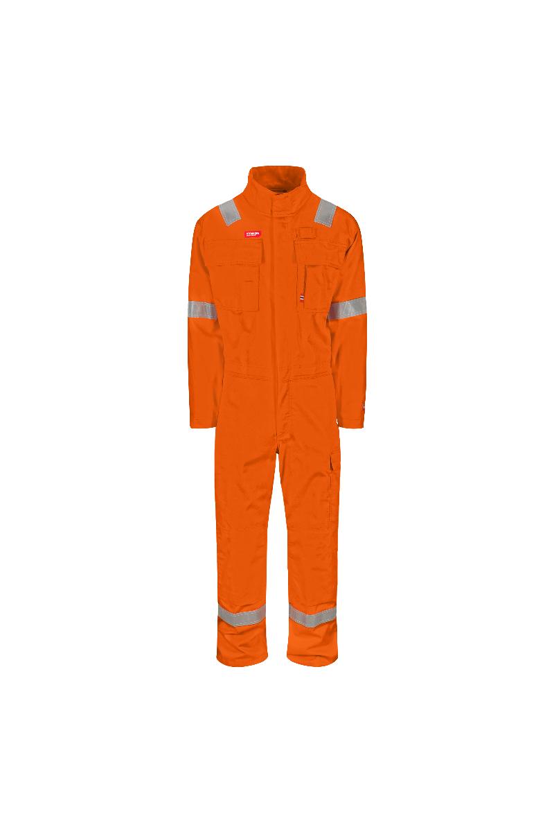 Denne utgaven av kjeledress med knapp har derfor høyere ATPV- og ELIM-verdier enn tidligere. Den nye kvaliteten gir noe høyere vekt, uten at det går på bekostning av komforten eller slitestyrke.