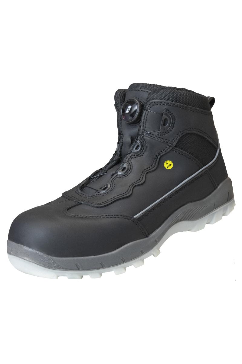 SPORT STEP MID FIT, vernestøvler, S3, slitesterkt narvskinn, svart, tøff og svertefri PU / TPU yttersåle, grå / gjennomsiktig (fargekode: 1000), tåhette i glassfiber, tekstilperforeringsbestandig mellomsåle, metallfrie, ergonomiske innersåler, sporty design, med skivefeste 711 // FIT SYSTEM for rask tilgjengelighet og optimal passform, høyeste sklisikkerhet (SRC), bredde 11, godt polstret støvel for optimal passform og komfort, omkretsreflekterende stripe, hælfôr for enkel på- og avkledning og hælforsterkning laget av robust mikrofiber, DGUV Rule 112-191-sertifisert, ESD-kompatibel