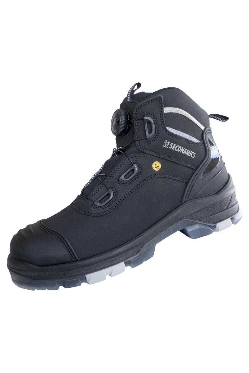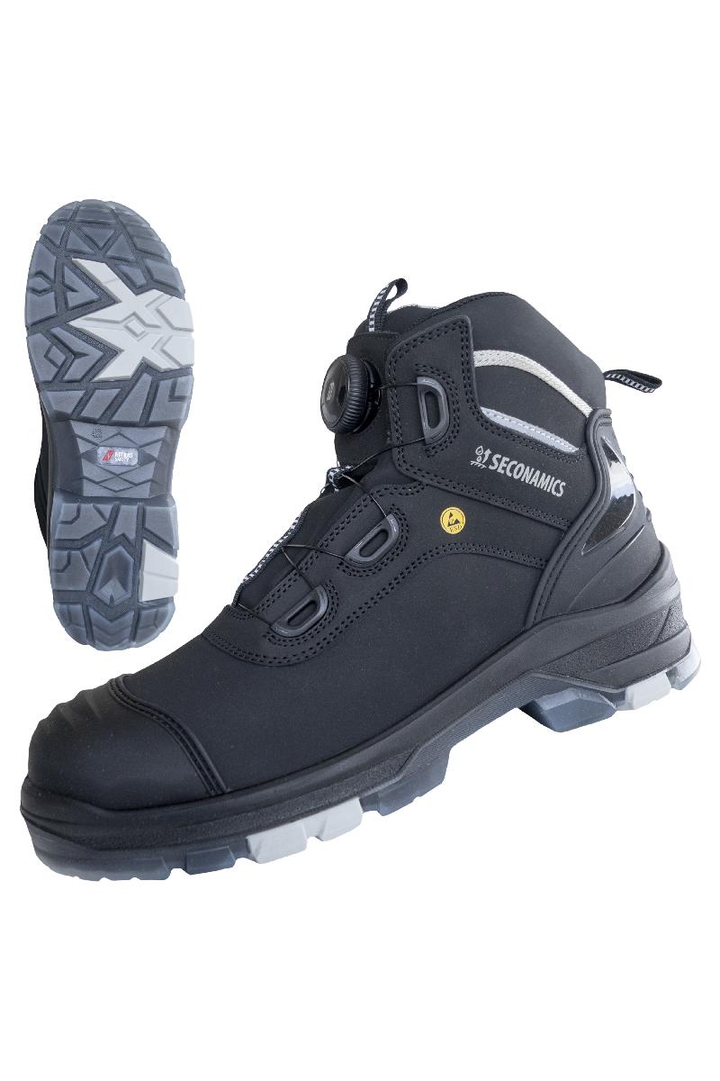 ULTIMATE STEP HIGH FIT, sikkerhetsstøvler, høye, S7S CI FO SC, slitesterkt Action-lær, svart, slitesterk PU / TPU såle, svart / gjennomsiktig (fargekode: 1000), fiberglass tåhette, tekstil perforeringsmotstandsdyktig mellomsåle, metallfri, Premium COMFORT STEP innleggssåler, ergonomisk formet, med rattfeste 712 // FIT SYSTEM for rask tilgjengelighet og optimal passform, vanntett og pustende SECONAMICS-membran, høyeste sklisikkerhet (SR), bredde 11, godt polstret skaft for optimal passform og komfort, reflekterende elementer, hælfor for enkel på- og avtaking og hæl forsterkning laget av robust mikrofiber, ekstra tåhette, TPU-forsterkning ved hælen, Premium kvalitet, DGUV Regel 112-191-godkjent, Type 1, ESD-kompatibel, PPE risikokategori II