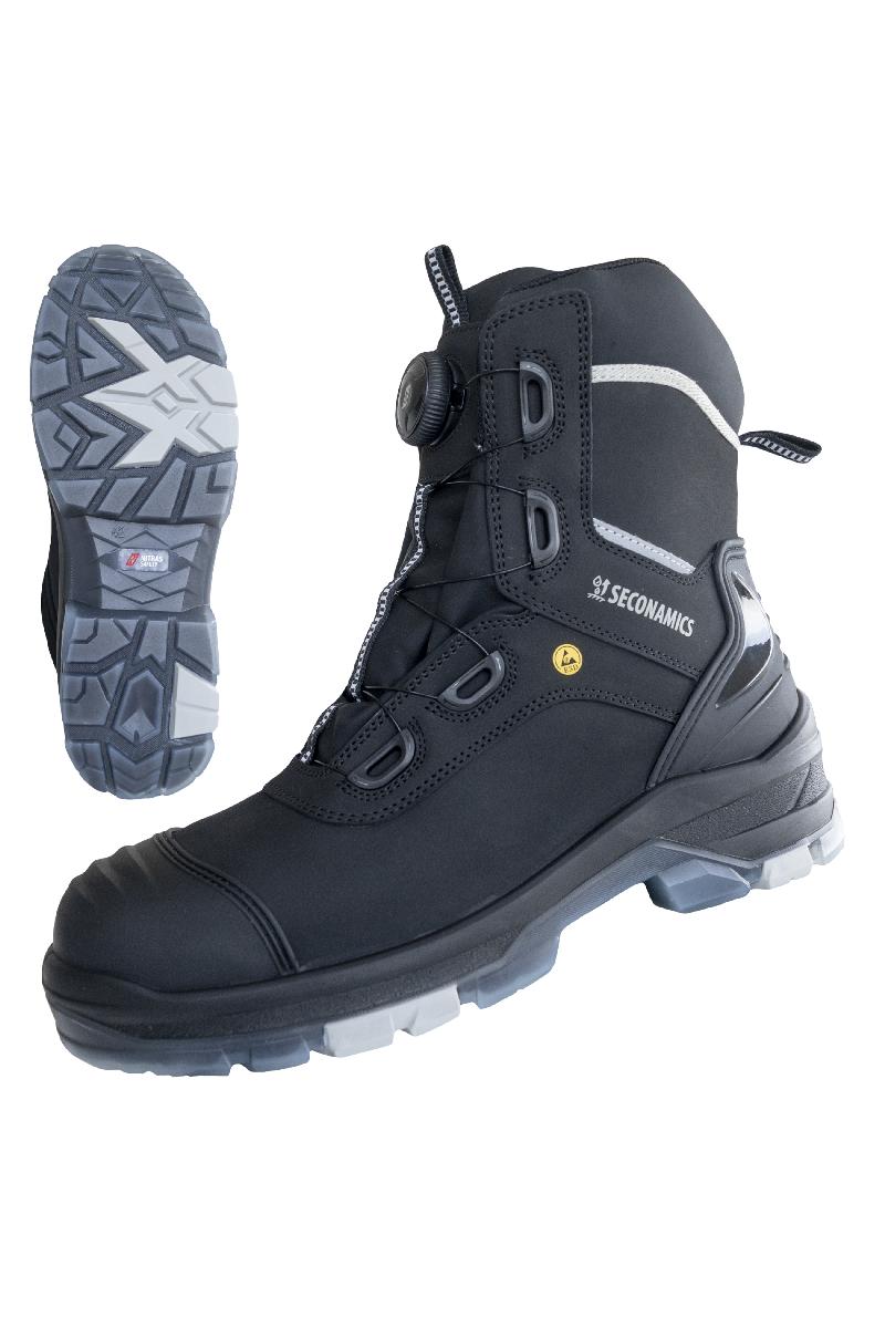 ULTIMATE STEP HIGH FIT, sikkerhetsstøvler, høye, S7S CI FO SC, slitesterkt Action-lær, svart, slitesterk PU / TPU såle, svart / gjennomsiktig (fargekode: 1000), fiberglass tåhette, tekstil perforeringsmotstandsdyktig mellomsåle, metallfri, premium COMFORT STEP innleggssåler, ergonomisk formet, med rattfeste 712 // FIT SYSTEM for rask tilgjengelighet og optimal passform, vanntett og pustende SECONAMICS-membran, høyeste sklisikkerhet (SR), bredde 11, godt polstret skaft for optimal passform og komfort, reflekterende elementer, hælfor for enkel på- og avtaking og hælforsterkning laget av robust mikrofiber, ekstra tåhette, TPU-forsterkning ved hælen, kvalitet i toppklasse, DGUV Regel 112-191-godkjent, Type 1, ESD-kompatibel, PPE risikokategori II